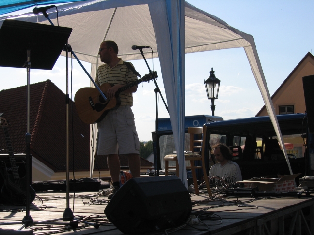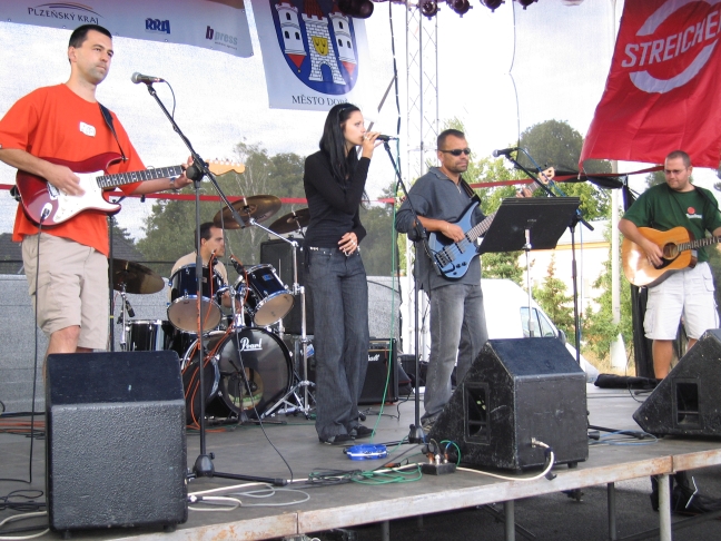 Tak jsme zase po delší době odehráli vystoupení a nutno říci, že nás samotné potěšila výborná atmosféra na Radbuza festu v Dobřanech. Zahajovali jsme večerní koncert a díky profesionální práci zvukařů a pořadatelů naše vystoupení plynulo v naprosté pohodě a báječně jsme si ho užili. Do Dobřan jsme přijeli těsně po prvním seznámení s novou zkušebnou a tak jsme ve svém bloku přehráli nejlepší skladby z našeho repertoáru ještě rozehřátí odpolední zkouškou. Dle reakcí publika to zřejmě bylo znát (foto). 3.5.2009 Nepomuk - Oslavy osvobození 2009